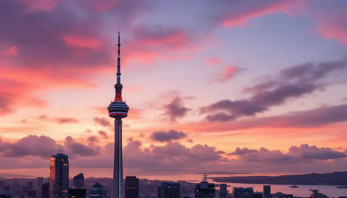 Premium New Zealand coastal area productions featuring palm-lined promenades, luxury resorts, Auckland festival infrastructure, and hilltop villages.